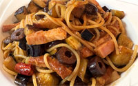 ベーコンと茄子とカラマタオリーブの